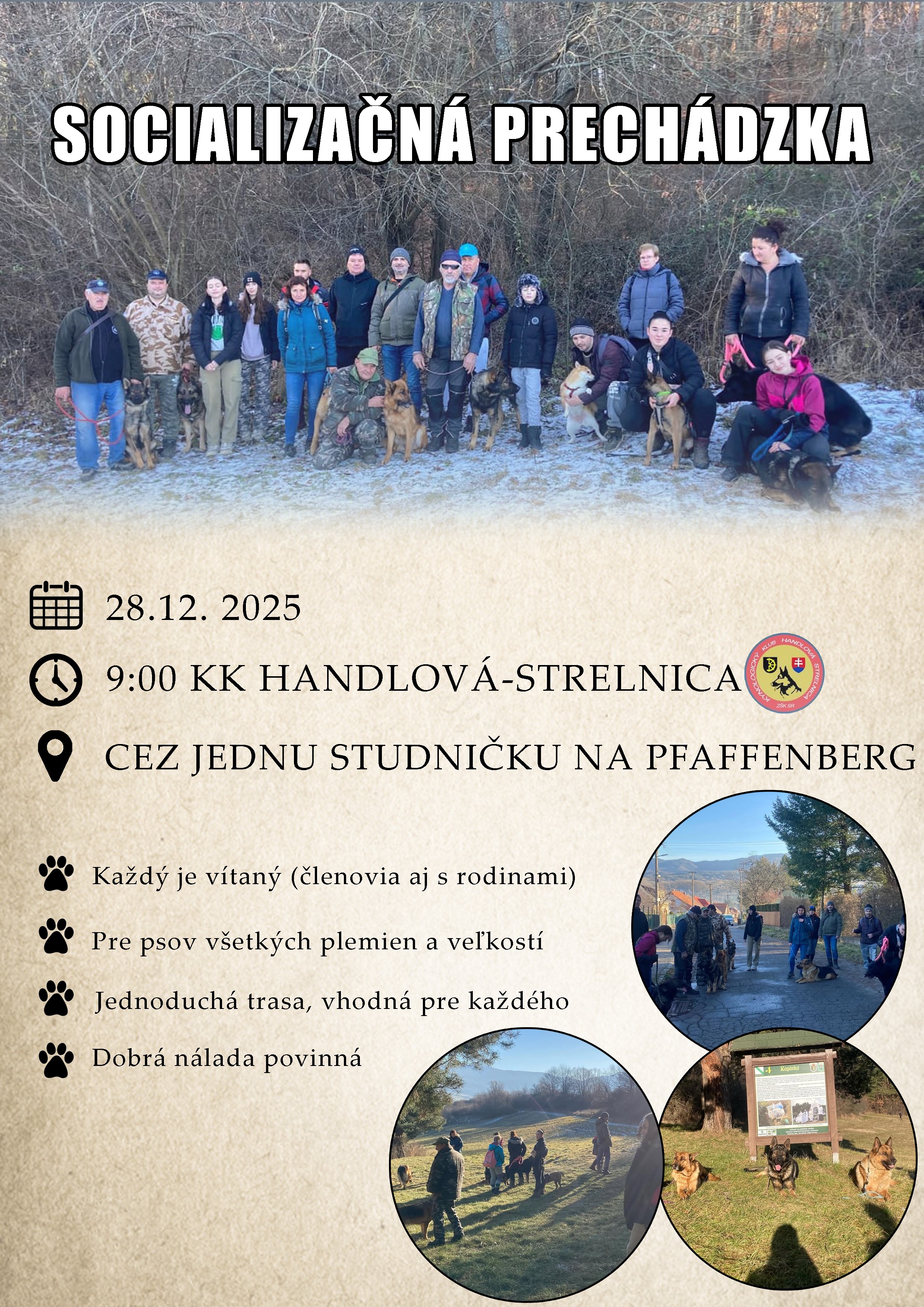 2.ročník pochodu ,,socializácia psov, dňa 28.12.2025 o 9.oo h. Zraz u nás v areáli klubu.